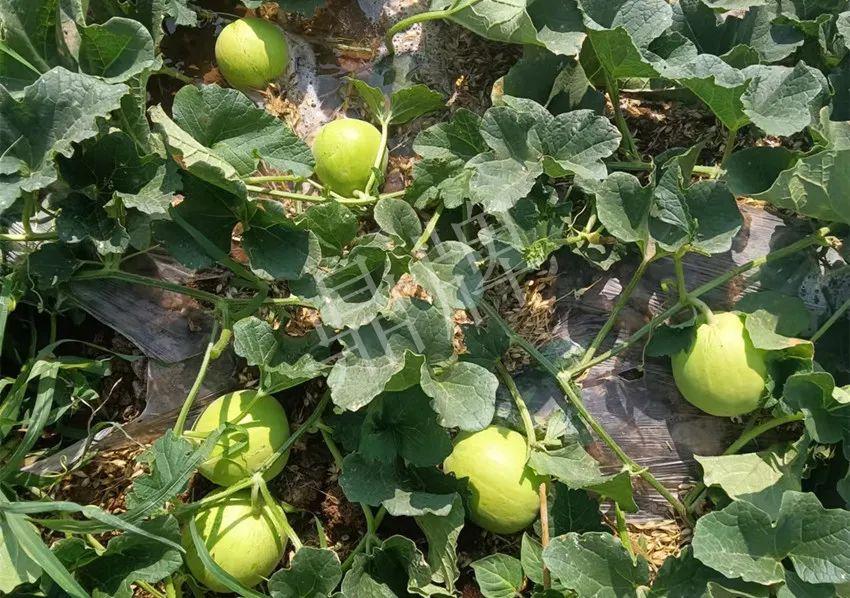 我們這里是從四月中旬開始麥茬套種甜瓜,為了讓甜瓜盡早上市,賣上好價錢,就在麥子收獲前定植。行距為1.9米、株距1米,甜瓜苗在未成熟的麥田中生長,寬行距有利于通風(fēng),以利瓜苗快速生長。