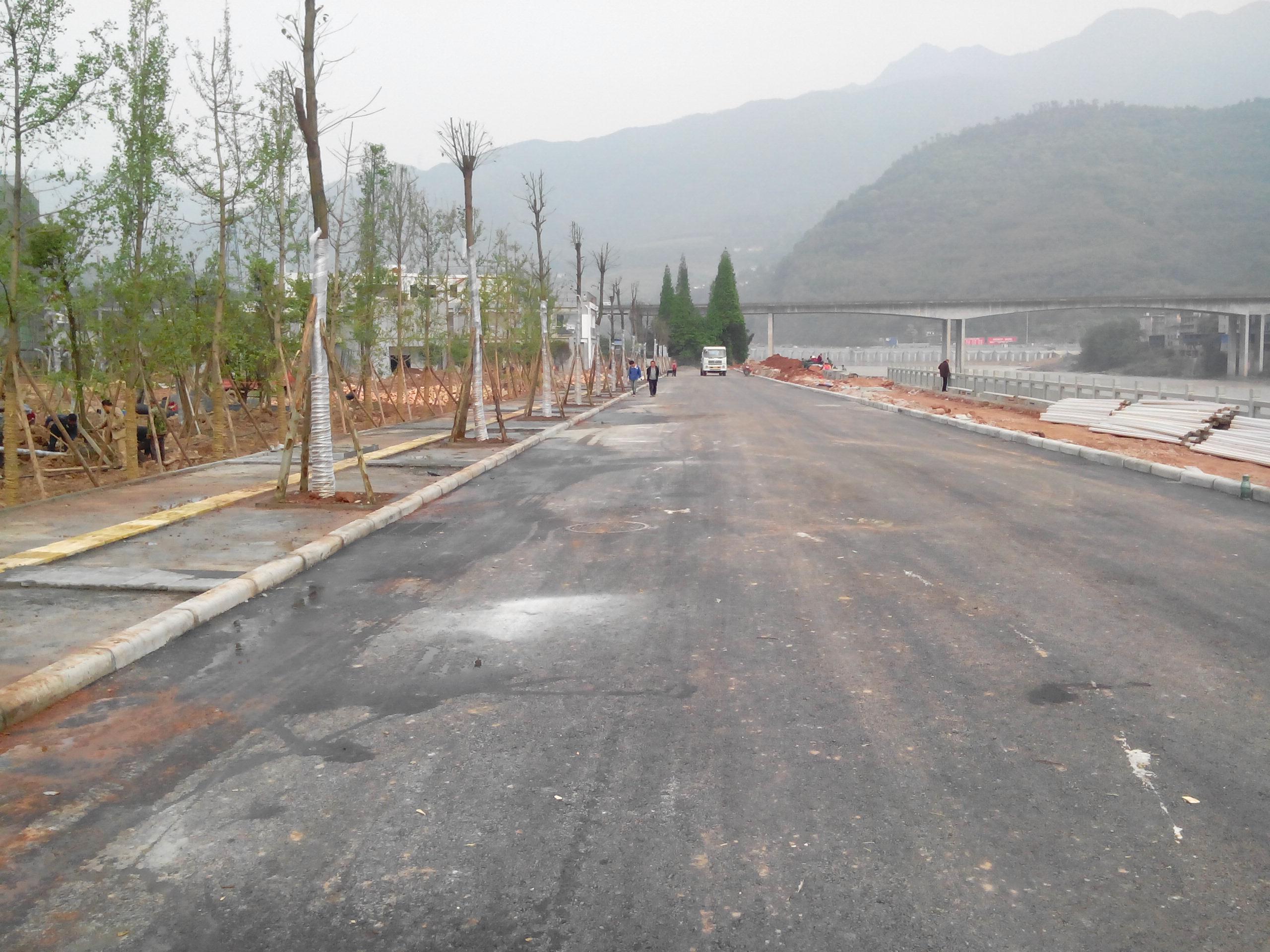 二是合理安排施工計劃,扎實推進項目建設。我公司按照時間節(jié)點,倒排工期,順排工序。15天內完成3萬方路基土石方填筑和600米的雨污水管網施工; 20天內就完成路基級配碎石、水穩(wěn)鋪筑、社會通道的硬化處理;30天內完成路面瀝青的攤鋪、給水管道施工、人行道墊層施工。尤其在處理山體段的回填施工,施工單位派出骨干力量,加班加點進行施工,確保陸家壩居民安全出行。
