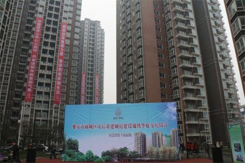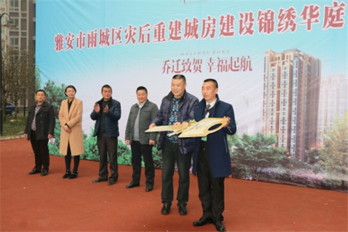交房儀式上,出席交房儀式的相關(guān)部門負(fù)責(zé)人向付出辛勤努力的建設(shè)者表示崇高的敬意,向喜遷新居的全體居民表示熱烈的祝賀。并指出,安居房建設(shè)工作是一項政策性強、涉及面廣,復(fù)雜又繁重的工作,更是群眾關(guān)心、社會關(guān)注的熱點,全力做好這項工作是大家義不容辭的責(zé)任和義務(wù)。在下一步工作中,爭取在2015年12月31日前,所有城房項目將達(dá)到“拆除外架、水電氣通、入戶道路通、完成樣板間、分房到戶、可以內(nèi)裝” 的要求。在既定時間內(nèi),全面完成重建任務(wù),為雅安經(jīng)濟作出貢獻。
