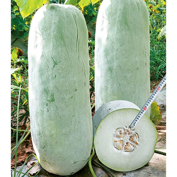 果實棒形,嫩瓜上市果長23厘米左右、果徑約6厘米,果重400克左右。果皮嫩綠,肉質(zhì)乳白,沒有粗纖維,口感細膩柔軟,清香味甜。