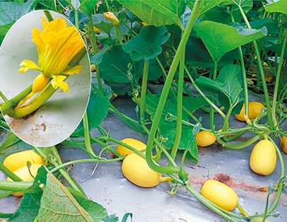 雜交改良的特早南瓜,有西葫蘆一樣早,從基部開始坐果,坐果多、坐果期長;要求在瓜250~350克時及時采收,比西葫蘆好吃,獨有冬筍的味道,很脆爽;宜吃嫩瓜,瓜老口感下降。上市的嫩瓜很亮眼,能創(chuàng)高收入。