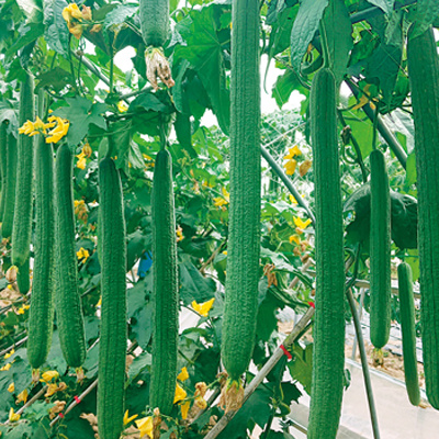 三倍體硬果絲瓜,可增產(chǎn)1倍。特早熟,藤蔓節(jié)間長只有一般絲瓜的1/3,所以成就了“大棚之愛”。已申請國家新品種保護。