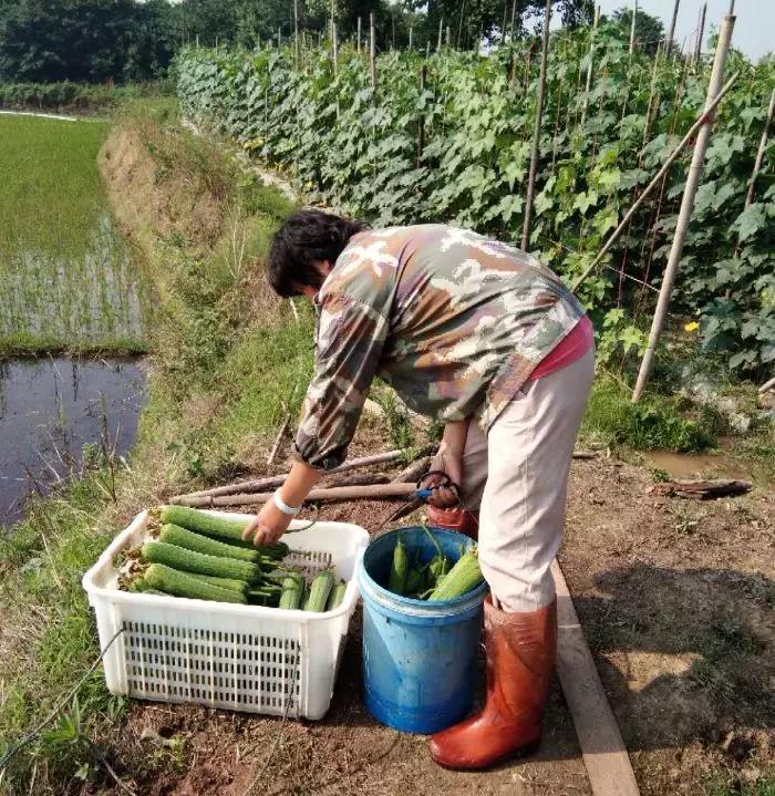 △ 劉健平夫婦露地栽培的“優(yōu)比1號(hào)”絲瓜