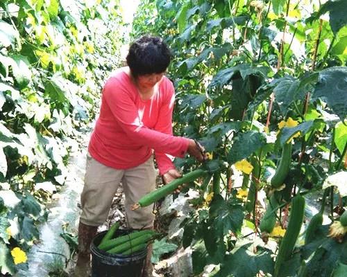 △ 劉健平夫婦大棚栽培的“優(yōu)比1號(hào)”絲瓜