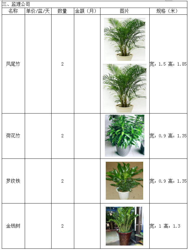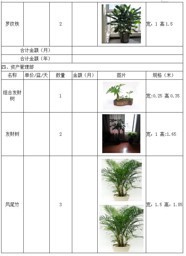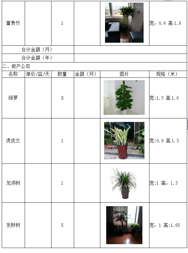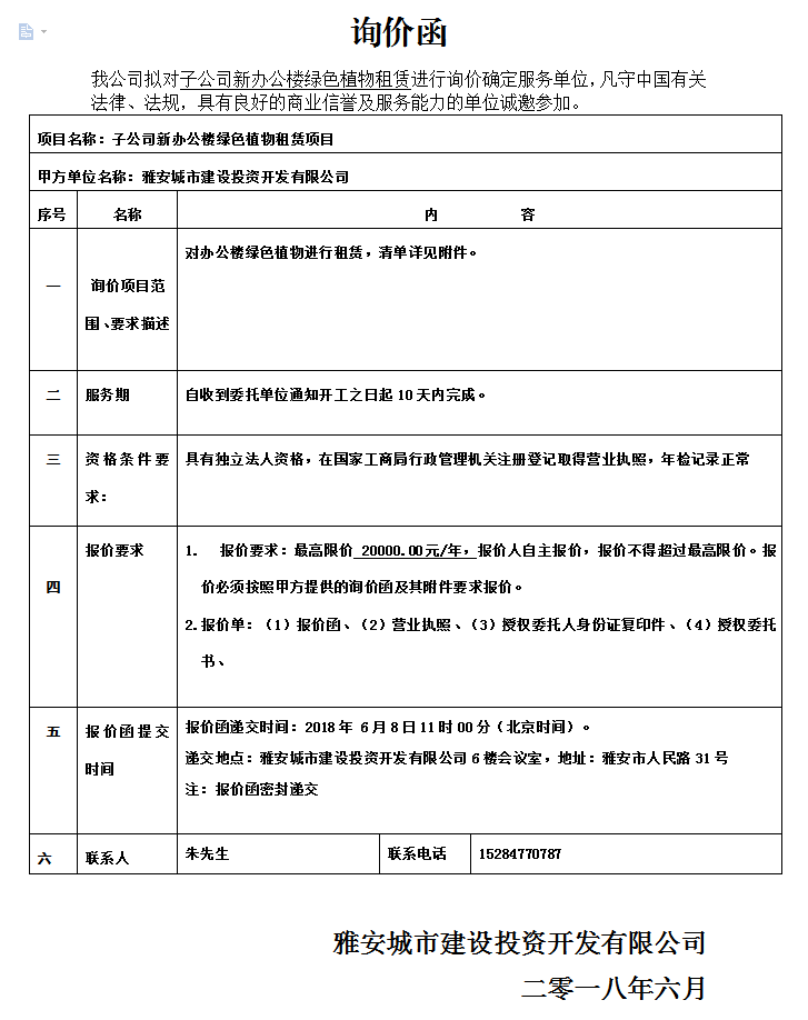 城投公司下屬子公司新辦公樓綠色植物租賃詢價(jià)函