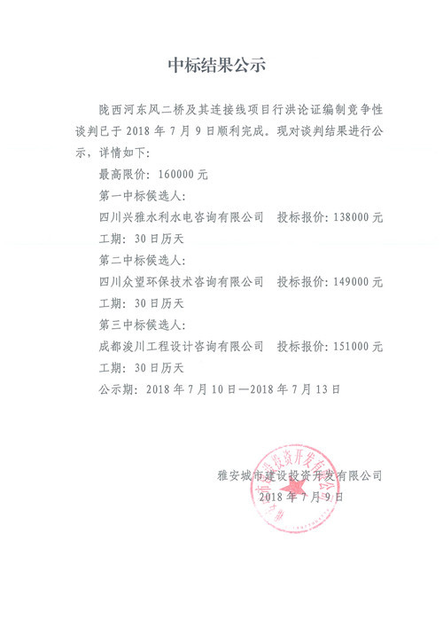 隴西河?xùn)|風(fēng)二橋及其連接線項目行洪論證報告編制中標(biāo)結(jié)果公示