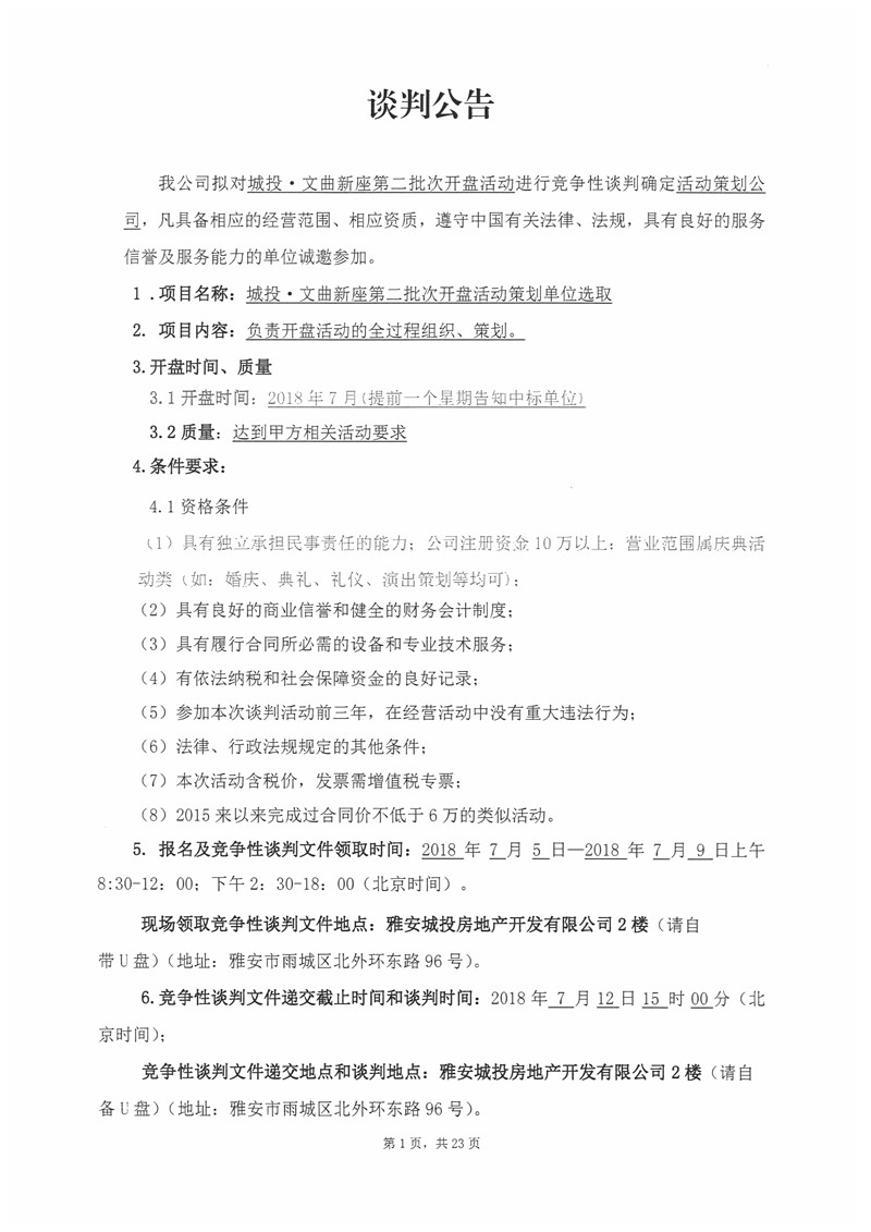 城投·文曲新座第二批次開盤活動競爭性談判