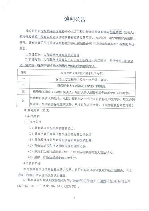 大興順路社區(qū)服務(wù)中心土方工程競爭性談判公告