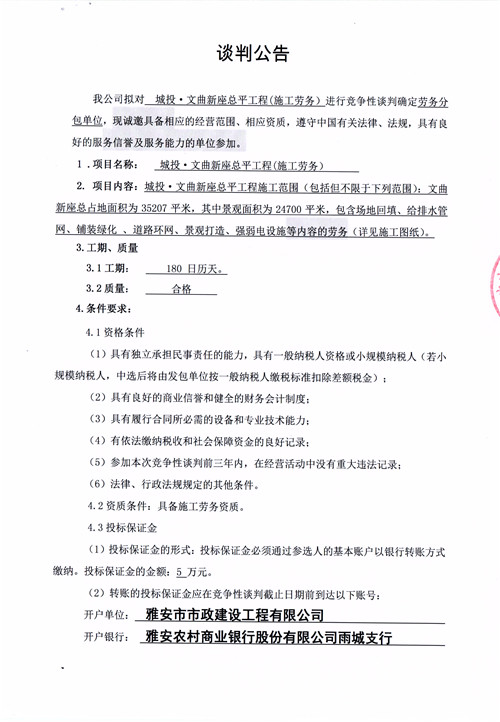 城投·文曲新座總平工程(施工勞務)競爭性談判公告