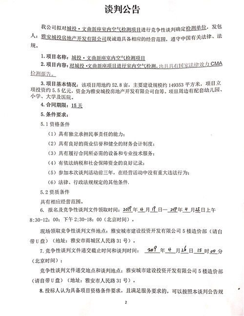 城投·文曲新座室內(nèi)空氣檢測項(xiàng)目競爭性談判公告