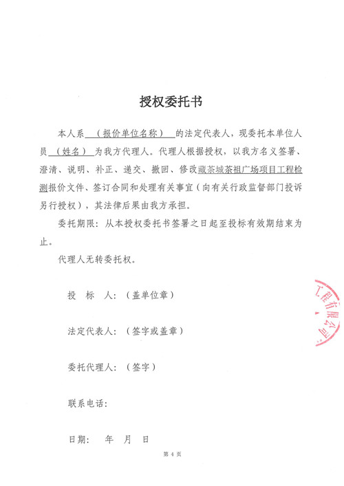 藏茶城茶祖廣場項目工程檢測詢價函