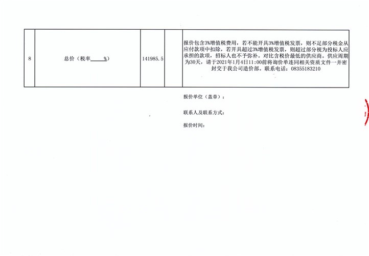 詢(xún)價(jià)清單