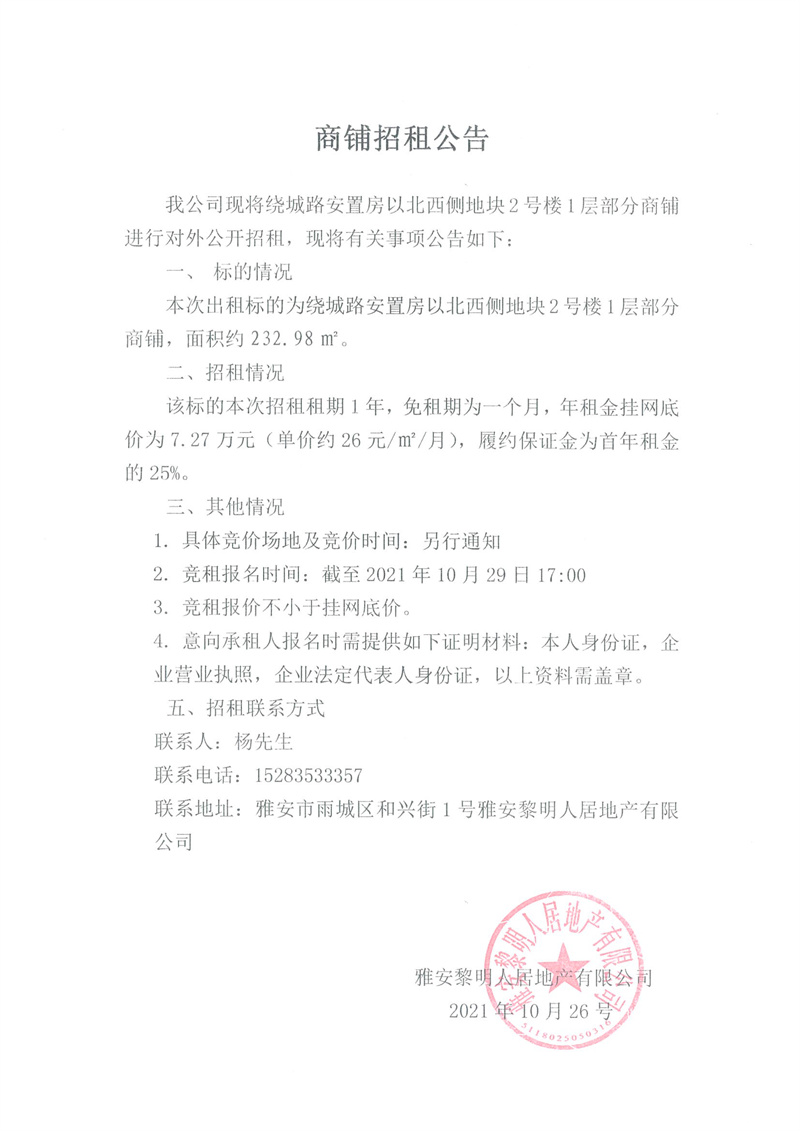 繞城路安置房以北西側(cè)地塊2號(hào)樓1層部分商鋪招租公告
