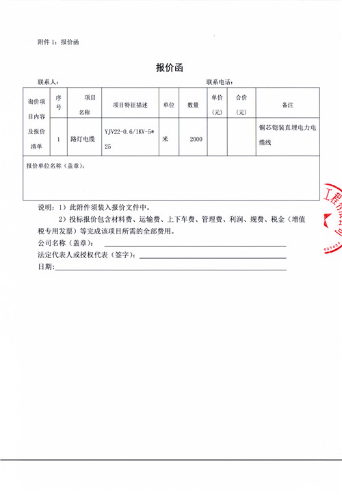 雅安市大興片區(qū)城市道路雨城大道一、二標段(含綜合管廊)道路建設(shè)工程路燈電纜詢價函