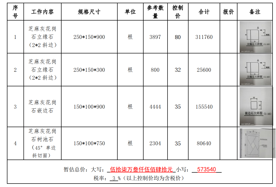 2、報(bào)價(jià)單位需提供250*150*300芝麻灰花崗石樣品,樣品在開標(biāo)之前送達(dá)。