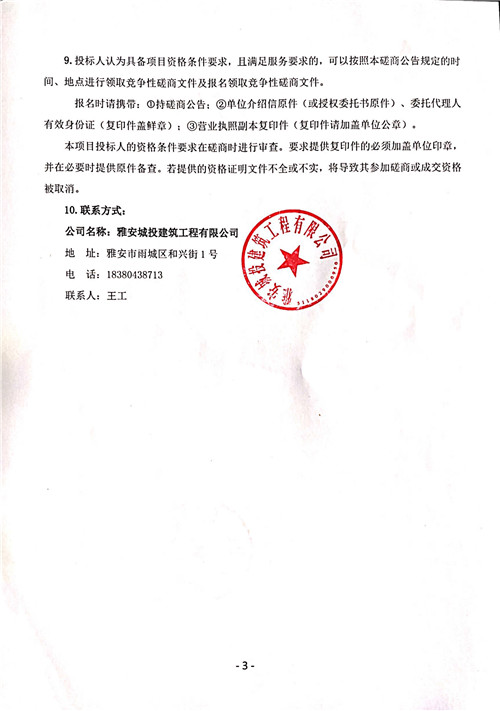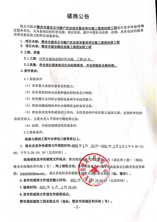 城投建工公司雅安市建安公司棚戶區(qū)改造安置房項目施工通道加固工程競爭性磋商公告