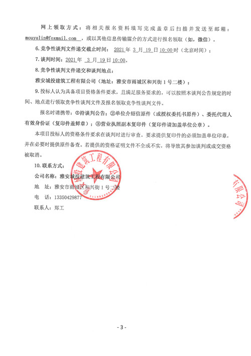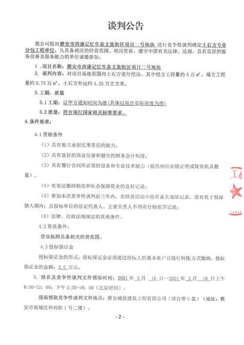 城投建工公司雅安市西康記憶生態(tài)文旅街區(qū)項(xiàng)目二號(hào)地塊土石方專業(yè)分包工程競爭性談判公告