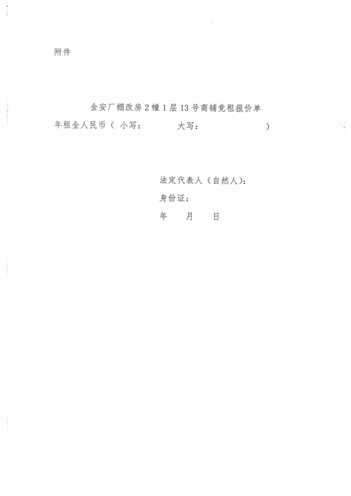金安廠棚改房2幢1層13號(hào)商鋪招租公告