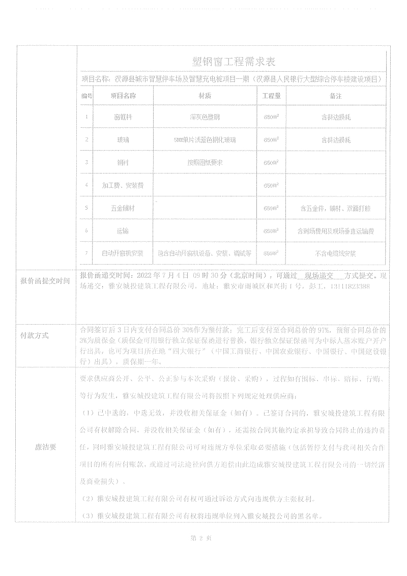 漢源縣城市智慧停車場(chǎng)及智慧充電樁項(xiàng)目一期漢源縣城人民銀行大型綜合樓停車樓建設(shè)項(xiàng)目塑鋼窗采購(gòu)競(jìng)價(jià)公告