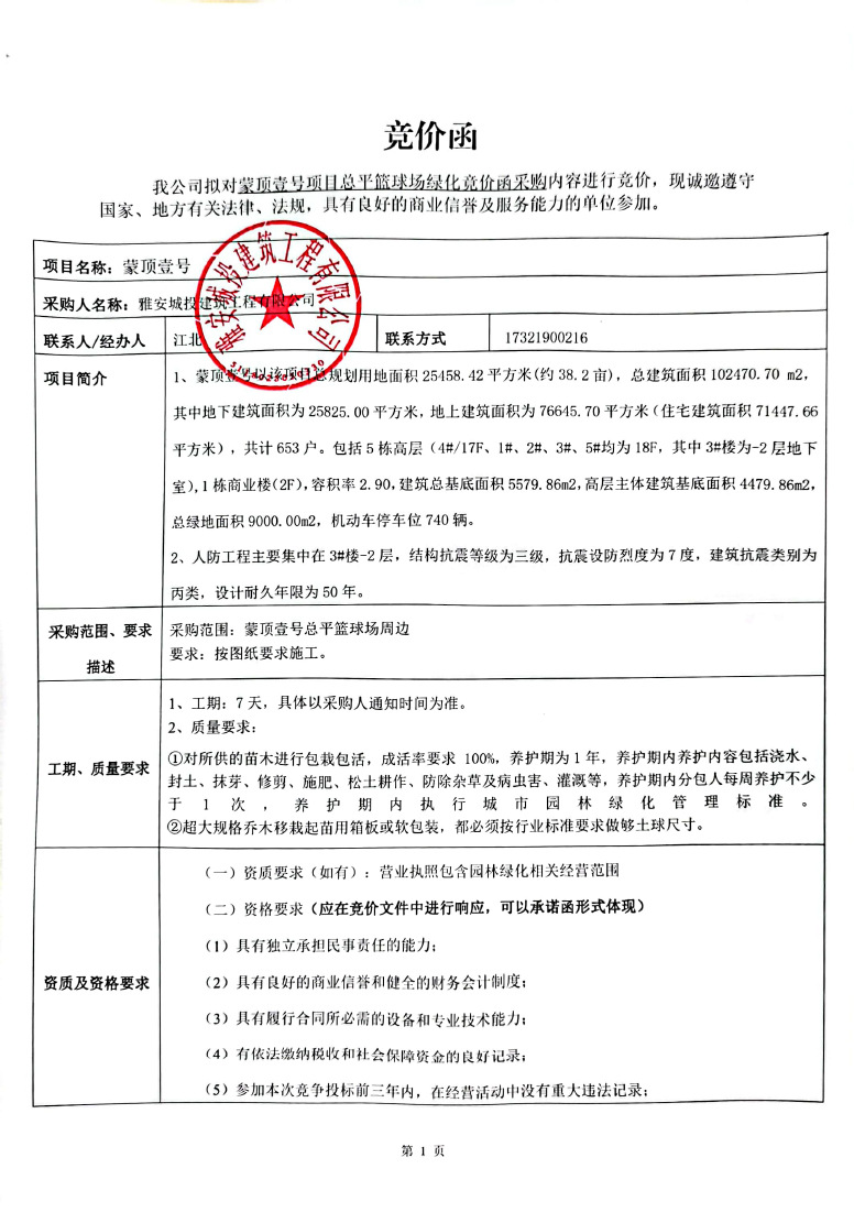 蒙頂壹號(hào)項(xiàng)目總平籃球場(chǎng)綠化競(jìng)價(jià)公告