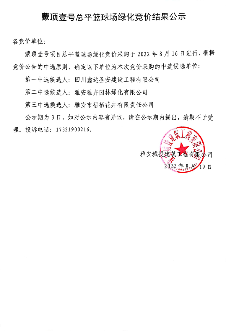 蒙頂壹號(hào)項(xiàng)目總平籃球場(chǎng)綠化競(jìng)價(jià)結(jié)果公示