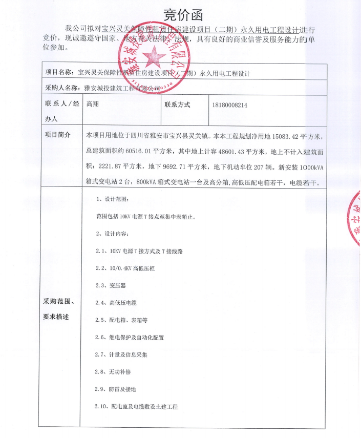 寶興縣靈關(guān)保障性租賃住房建設(shè)項(xiàng)目(二期)永久用電工程設(shè)計(jì)競(jìng)價(jià)公告