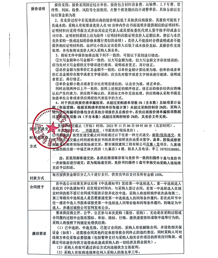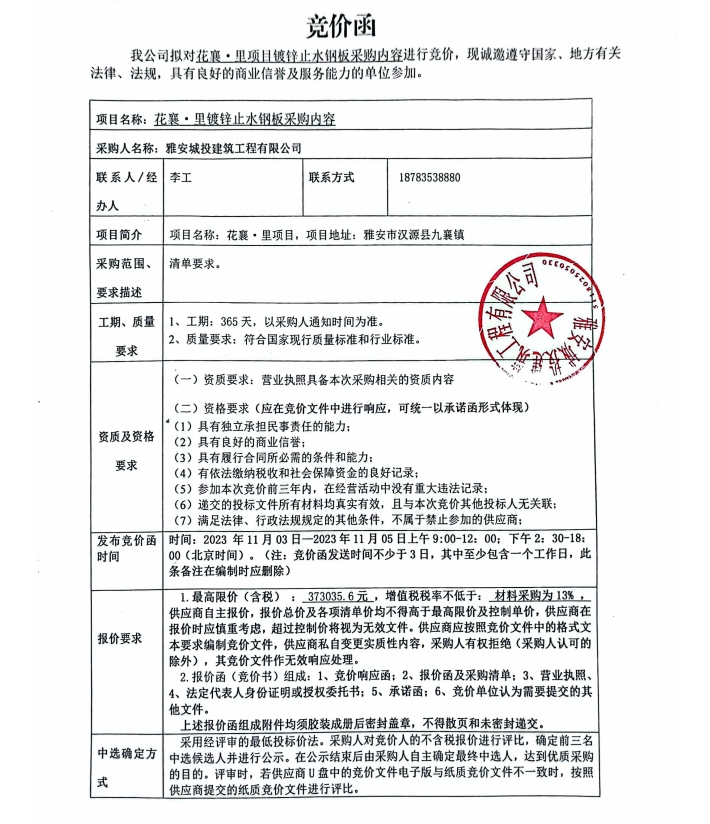 花襄·里項目鍍鋅止水鋼板采購內容競價公告