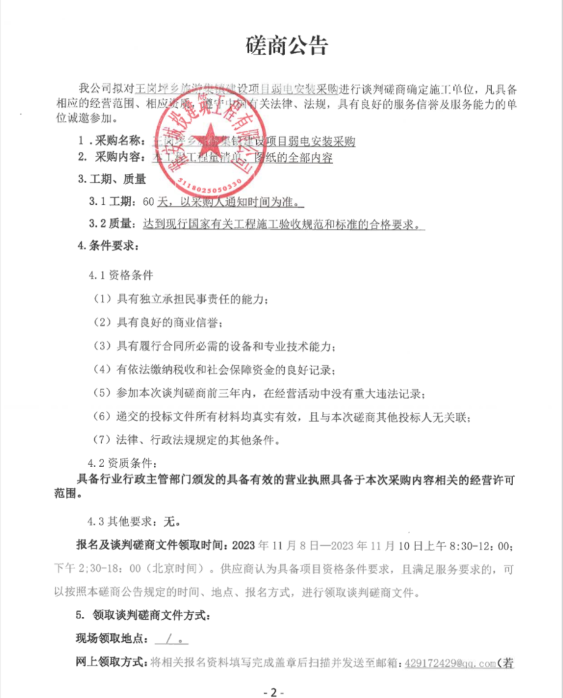 王崗坪鄉(xiāng)旅游集鎮(zhèn)建設項目弱電安裝采購談判磋商公告
