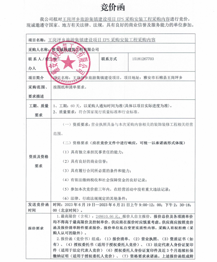 王崗坪鄉(xiāng)旅游集鎮(zhèn)建設(shè)項(xiàng)目EPS采購(gòu)安裝工程采購(gòu)內(nèi)容競(jìng)價(jià)公告