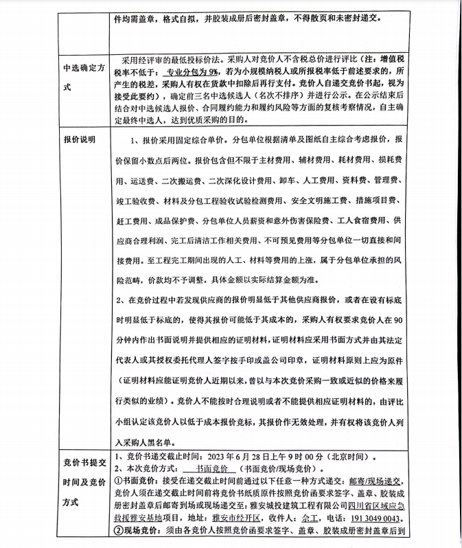 四川省區(qū)域應(yīng)急救援雅安基地項目交安專業(yè)分包競價公告