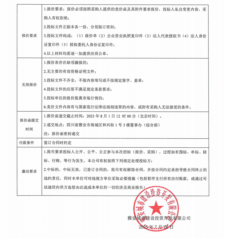 雅安城市建設投資開發(fā)有限公司辦公用品采購項目(第二次)競價公告