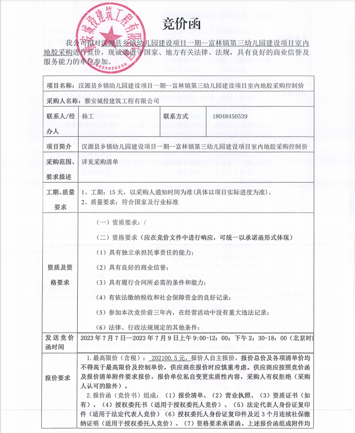 漢源縣鄉(xiāng)鎮(zhèn)幼兒園建設(shè)項(xiàng)目一期--富林鎮(zhèn)第三幼兒園建設(shè)項(xiàng)目室內(nèi)地膠采購競價(jià)公告