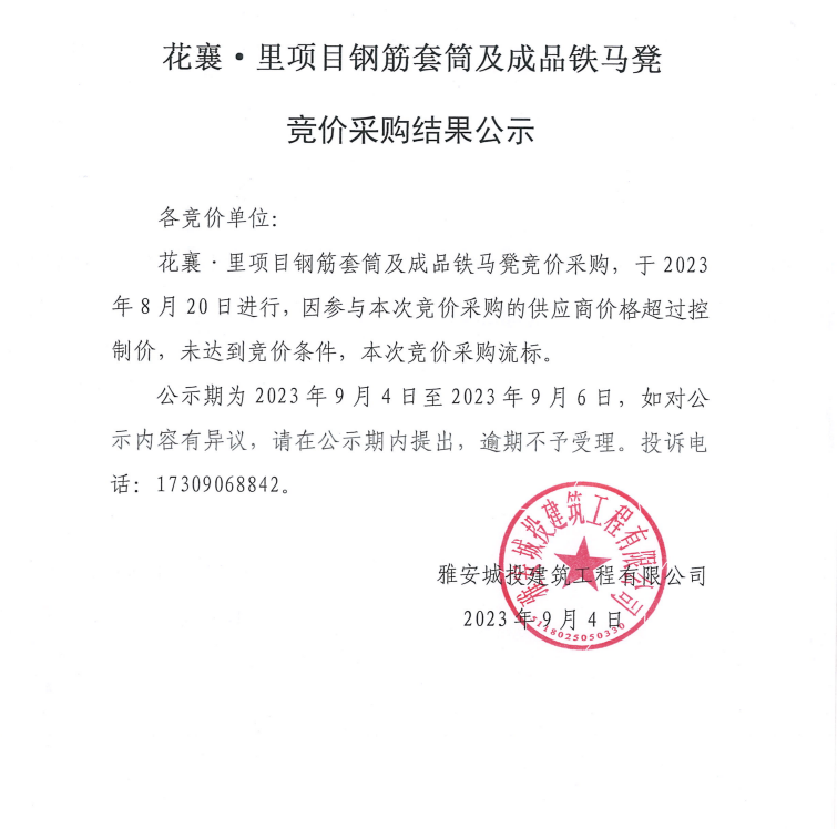 花襄·里鋼筋套筒及成品鐵馬凳競(jìng)價(jià)采購(gòu)結(jié)果公示