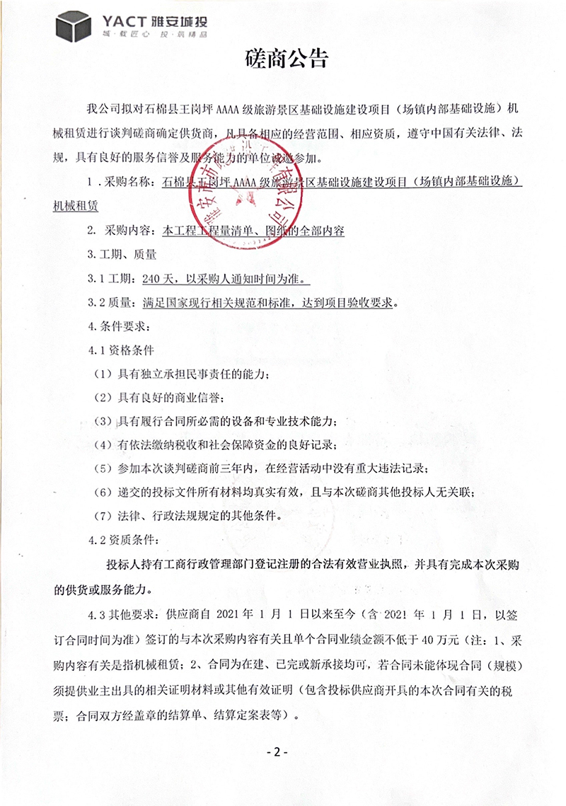 石棉縣王崗坪AAAA級旅游景區(qū)基礎(chǔ)設(shè)施建設(shè)項(xiàng)目(場鎮(zhèn)內(nèi)部基礎(chǔ)設(shè)施)機(jī)械租賃