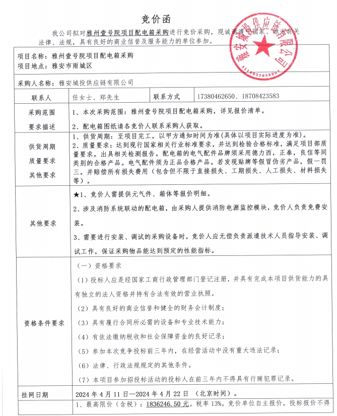 響應(yīng)文件格式-雅州壹號院項目配電箱采購
