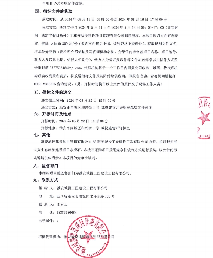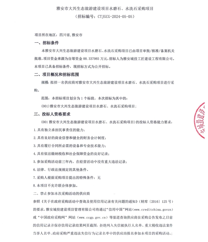 雅安市大興生態(tài)旅游建設(shè)項(xiàng)目水磨石、水洗石采購(gòu)項(xiàng)目公告