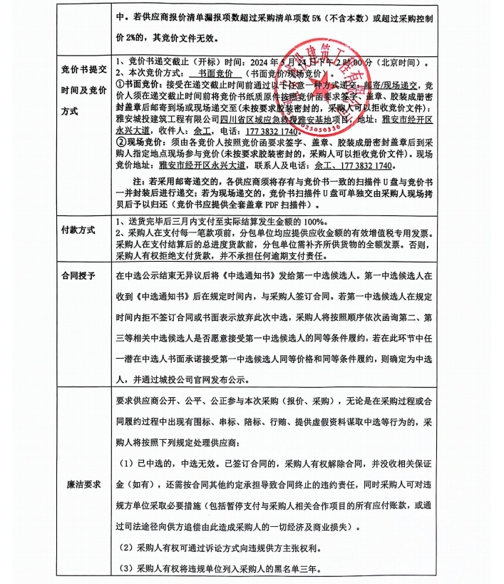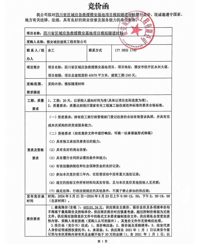 四川省區(qū)域應(yīng)急救援雅安基地項(xiàng)目模擬隧道材料競價公告