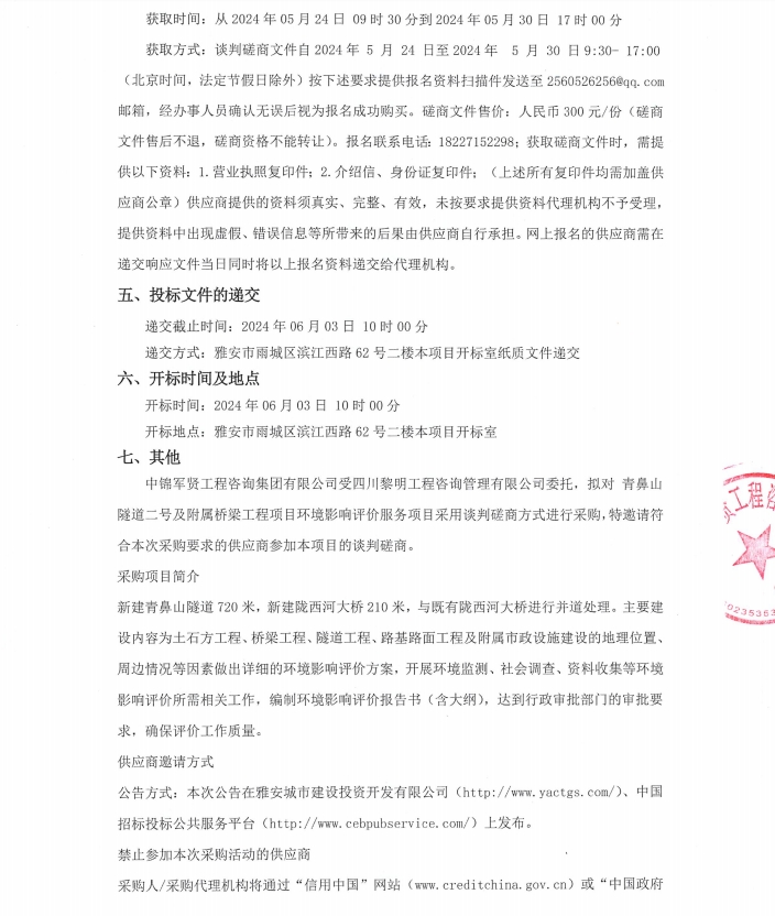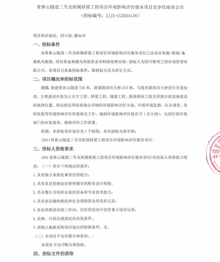 青鼻山隧道二號及附屬橋梁工程項(xiàng)目環(huán)境影響評價服務(wù)項(xiàng)目競爭性磋商公告