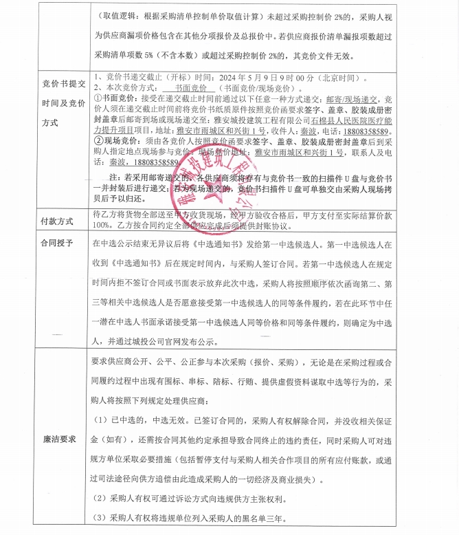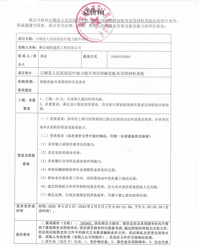 石棉縣人民醫(yī)院醫(yī)療能力提升項目鋁蜂窩板吊頂?shù)炔牧喜少弮?nèi)容競價公告