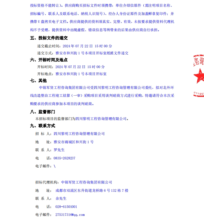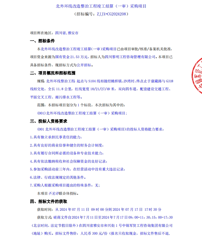北外環(huán)線改造整治工程竣工結(jié)算(一審)采購項目公告