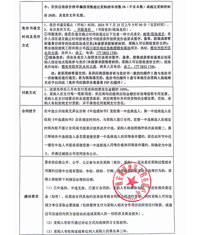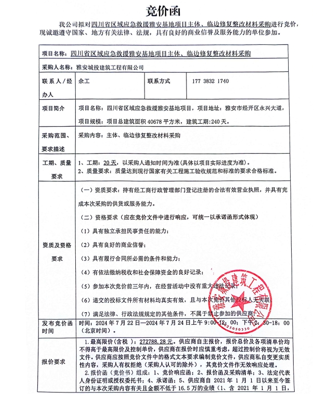 四川省區(qū)域應(yīng)急救援雅安基地項(xiàng)目主體、臨邊修復(fù)整改材料采購(gòu)競(jìng)價(jià)公告