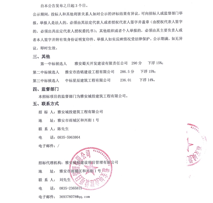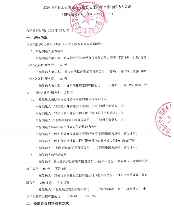 雅州印項(xiàng)目土石方工程專業(yè)分包采購項(xiàng)目中標(biāo)候選人公示