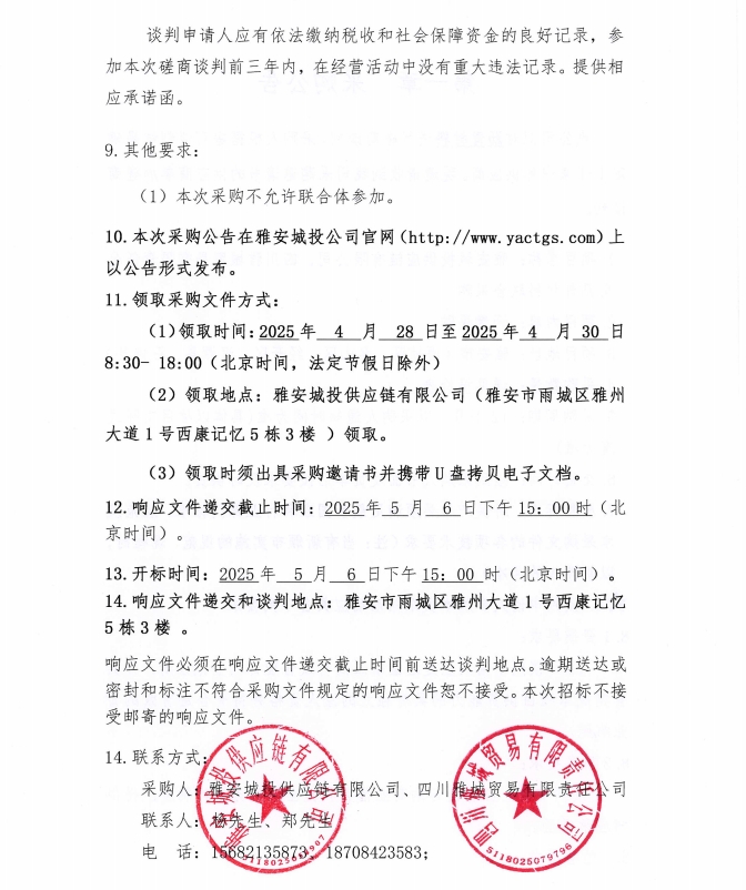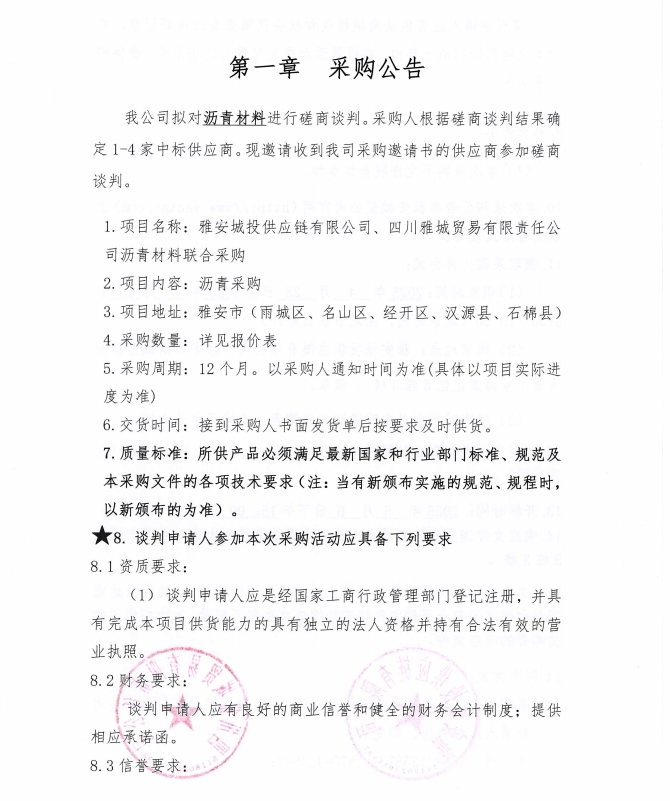 雅安城投供應鏈有限公司、四川雅城貿(mào)易有限責任公司瀝青材料聯(lián)合采購公告