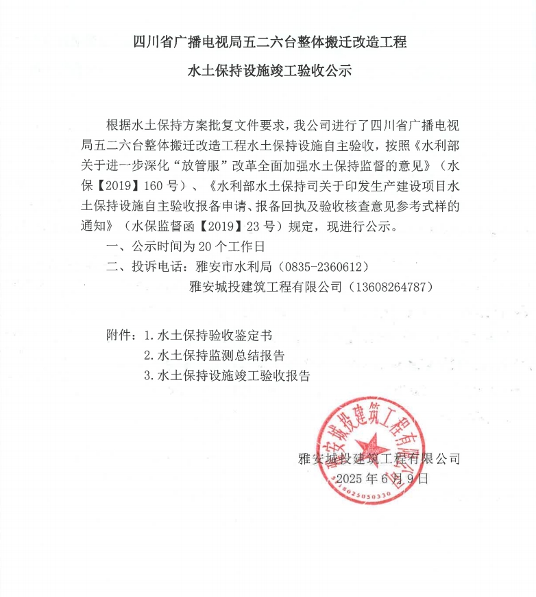 四川省廣播電視局五二六臺整體搬遷改造工程水土保持設施竣工驗收公示